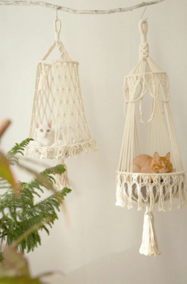 Cats love lounging in their own macrame cat hammock!