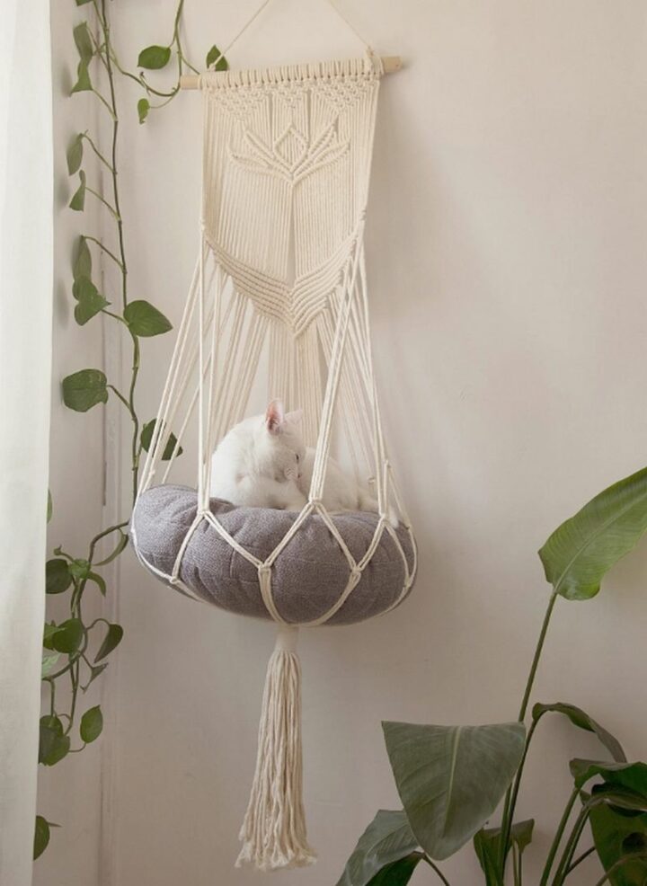 If you’re looking for a unique and stylish cat bed, then this hanging macrame cat hammock is the perfect option! Your cat will love it and you’ll love the way it looks in your home.