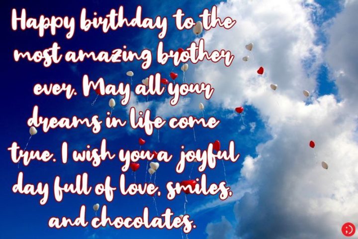 “Happy birthday to the most amazing brother ever. May all your dreams in life come true. I wish you a joyful day full of love, smiles, and chocolates.”
