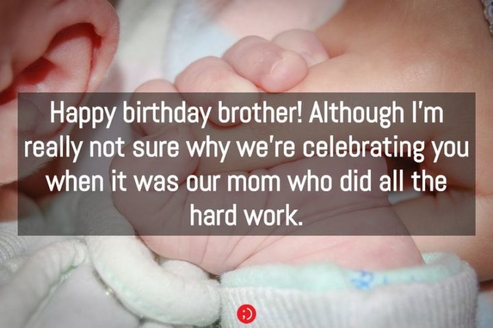 “Happy birthday brother! Although I’m really not sure why we’re celebrating you when it was our mom who did all the hard work.”