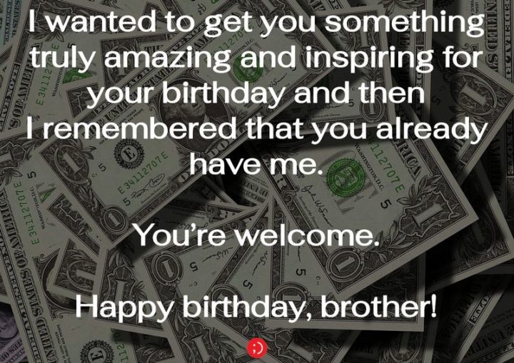 “I wanted to get you something truly amazing and inspiring for your birthday and then I remembered that you already have me. You’re welcome. Happy birthday, brother!”