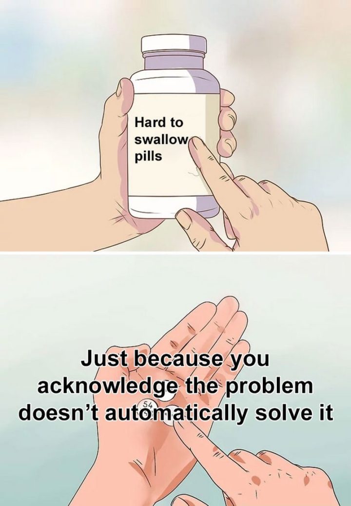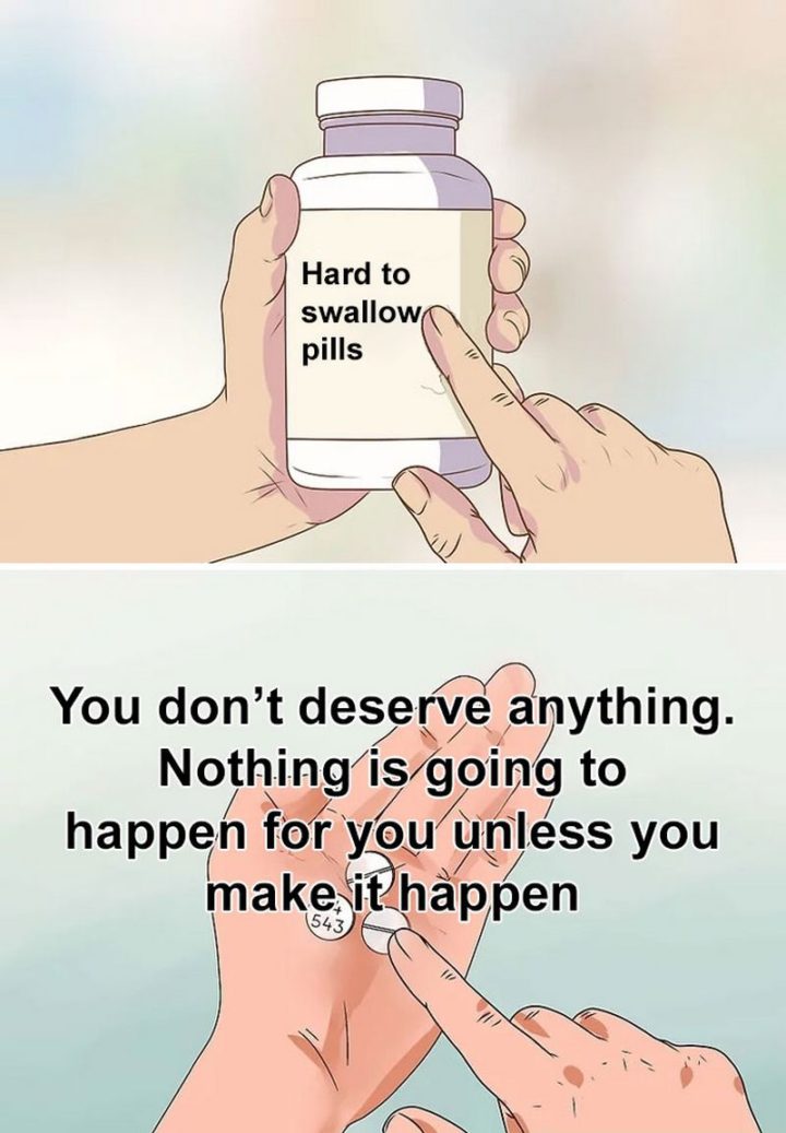 Sometimes the truth hurts and only when we see it written in black in white does it hit us. You may have seen “Hard To Swallow Pill” memes consisting of a pill bottle and a handful of pills that often contain facts that are hard to swallow.