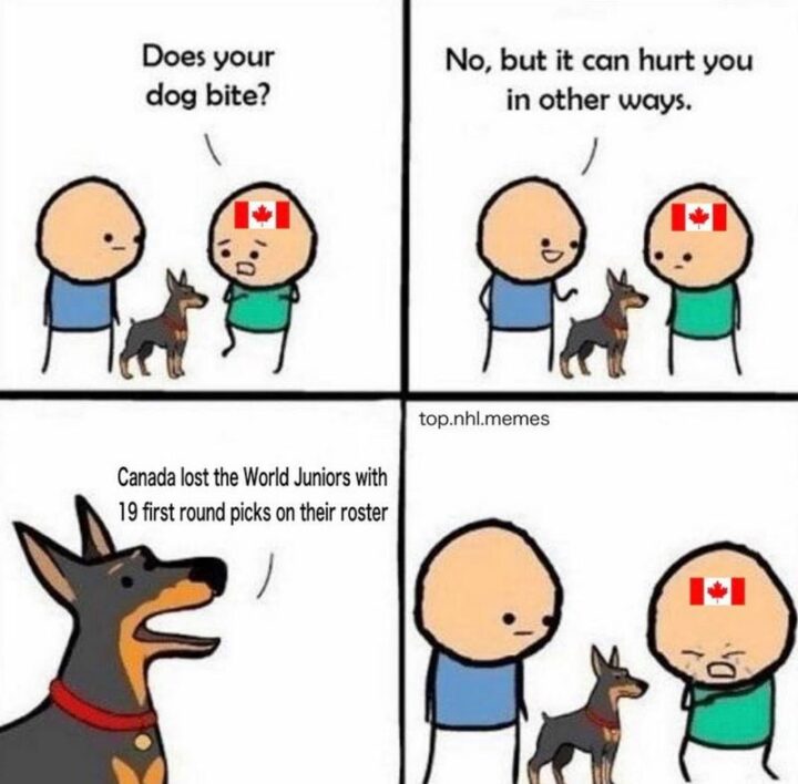 “Does your dog bite? No, but it can hurt you in other ways. Canada lost the World Juniors with 19 first-round picks on their roster.”