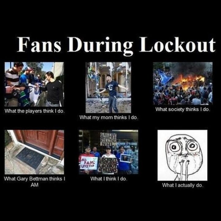 “Fans during lockout: What the players think I do. What my mom thinks I do. What society thinks I do. What Gary Bettman thinks I am. What I think I do. What I actually do.”