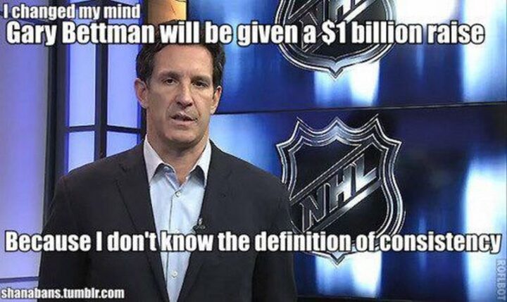 “Gary Bettman will be given a $1 billion raise because I don’t know the definition of consistency.”