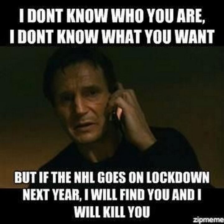 “I don’t know who you are, I don’t know what you want, but if the NHL goes on lockdown next year, I will find you and I will kill you.”