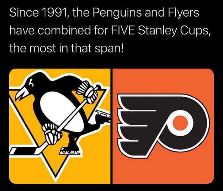 “Since 1991, the Pittsburgh Penguins and Philadelphia Flyers have combined the FIVE Stanley Cups, the most in that span!”