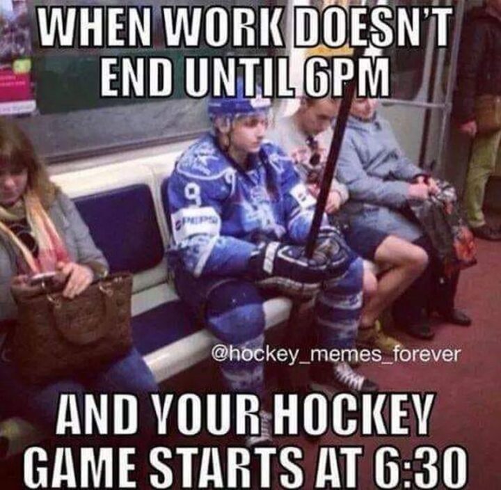 “When work doesn’t end until 6 pm and your hockey game starts at 6:30 pm.”