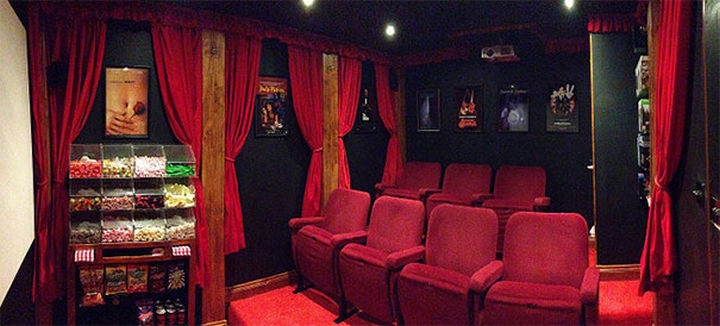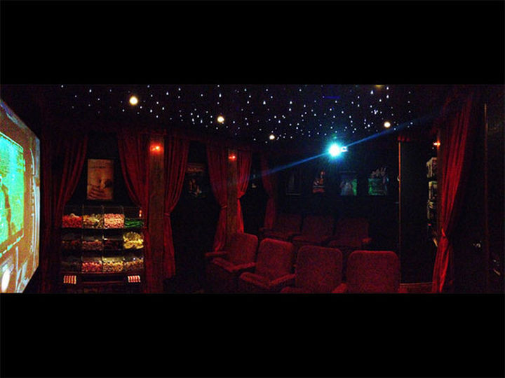 WOW! The inside is a full-blown home theater with projector and authentic plush theater seats.