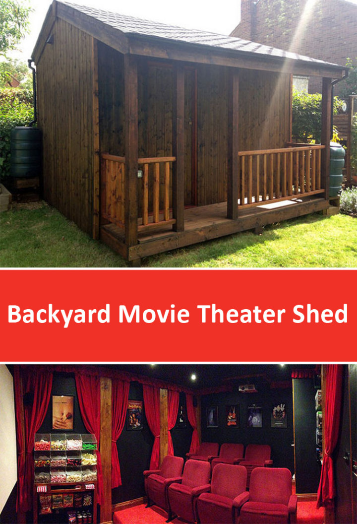 This shed truly is the ultimate backyard movie theater. Time to invite the family to movie night!