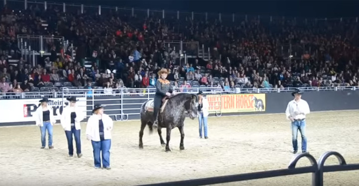 The following horse in this video even knows how to line dance! When the announcer at Equitana 2013 in Germany starts playing Billy Ray Cyrus’ 1992 hit ‘Achy Breaky Heart’, the horse begins dancing along with his line dancing partners!