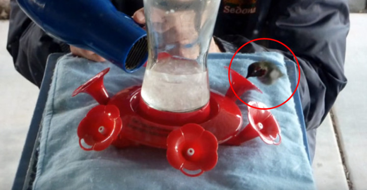 When bitter cold hit the area of Sedona, Arizona, a man named Pat Izzo placed his hummingbird feeder on a heating pad to ensure the nectar wouldn’t freeze. To his surprise, both hummingbirds who feed regularly from his bird feeder would also perch themselves on the heating pad to warm up.