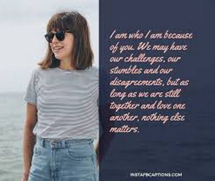 “I am who I am because of you. We may have our challenges, our stumbles, and our disagreements, but as long as we are still together and love one another, nothing else matters.” – Unknown