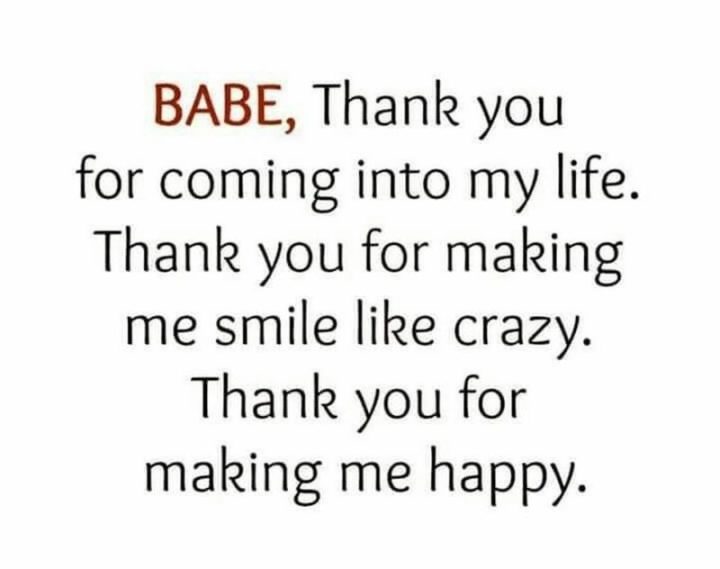 “Babe, thank you for coming into my life. Thank you for making me smile like crazy. Thank you for making me happy.” – Unknown