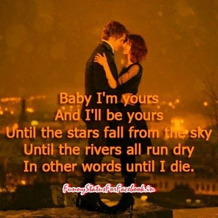 “Baby I’m yours and I’ll be yours until the stars fall from the sky until the rivers all run dry. In other words, until I die.” – Unknown