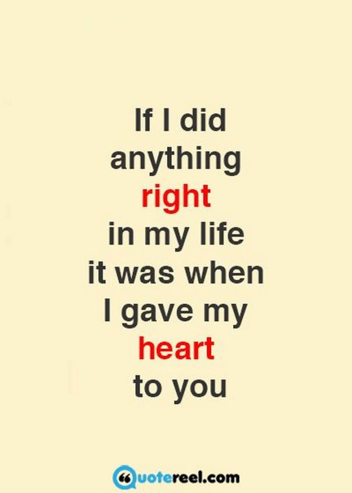 “If I did anything right in my life it was when I gave my heart to you.” – Unknown