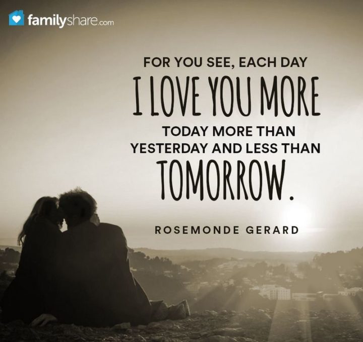 “For you see, each day I love you more, today more than yesterday and less than tomorrow.” – Rosemonde Gerard
