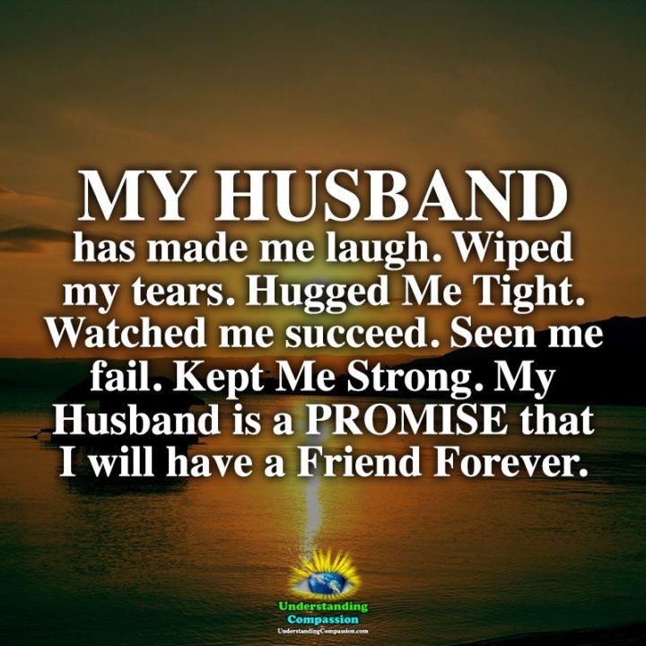 “My husband has made me laugh. Wiped my tears. Hugged me tight. Watched me succeed. Seen me fail. Kept me strong. My husband is a promise that I will have a friend forever.” – Unknown