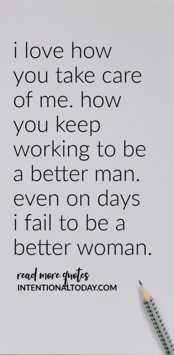“I love how you take care of me. How you keep working to be a better man. Even on days, I fail to be a better woman.” – Unknown