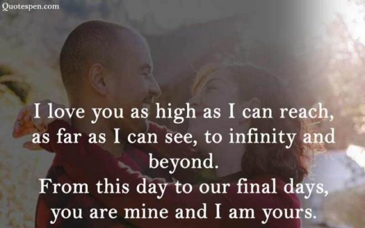 “I love you as high as I can reach, as far as I can see, to infinity and beyond. From this day to our final days, you are mine and I am yours.” – Unknown