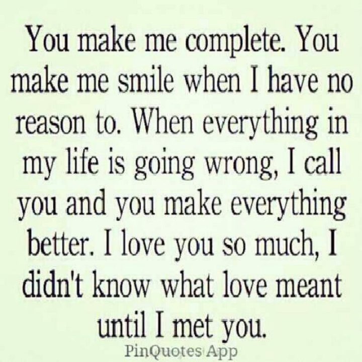 “You make me complete. You make me smile when I have no reason to. When everything in my life is going wrong, I call you and you make everything better. I love you so much, I didn’t know what love meant until I met you.” – Unknown