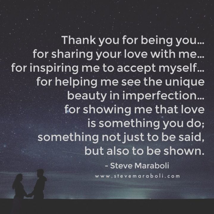“Thank you for being you…For sharing your love with me…For inspiring me to accept myself…For helping me see the unique beauty in imperfection…For showing me that love is something you do; Something not just to be said, but also to be shown.” – Steven Maraboli
