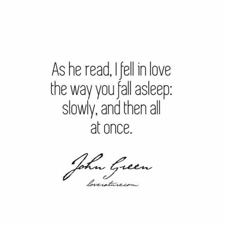 5) “As he read, I fell in love the way you fall asleep: slowly, and then all at once.” – John Green