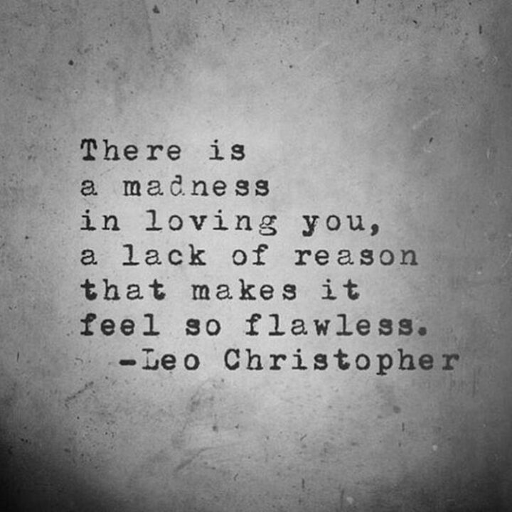 38) “There is a madness in loving you, a lack of reason that makes it feel so flawless.” – Leo Christopher