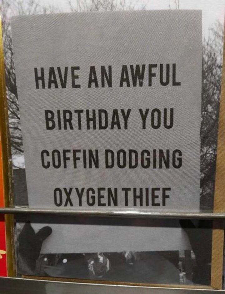 “Have an awful birthday you coffin-dodging oxygen thief.”