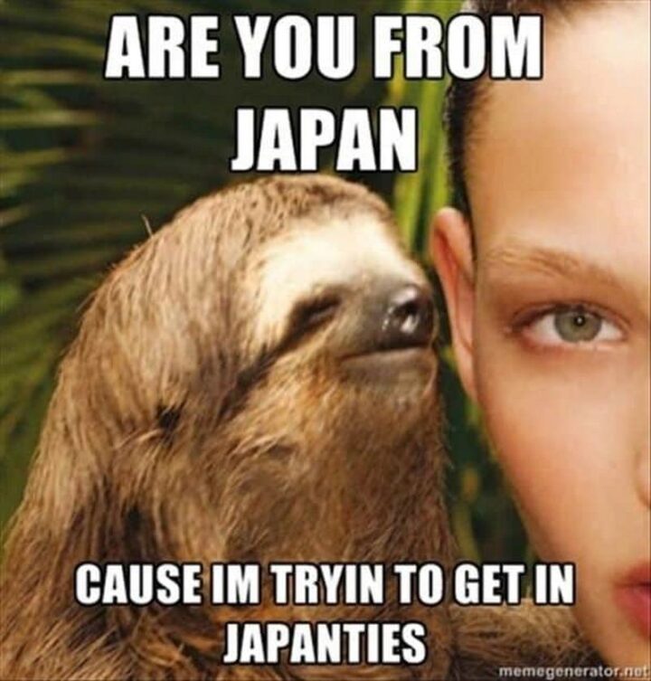 “Are you from Japan? Cause I’m tryin’ to get in japanties.”