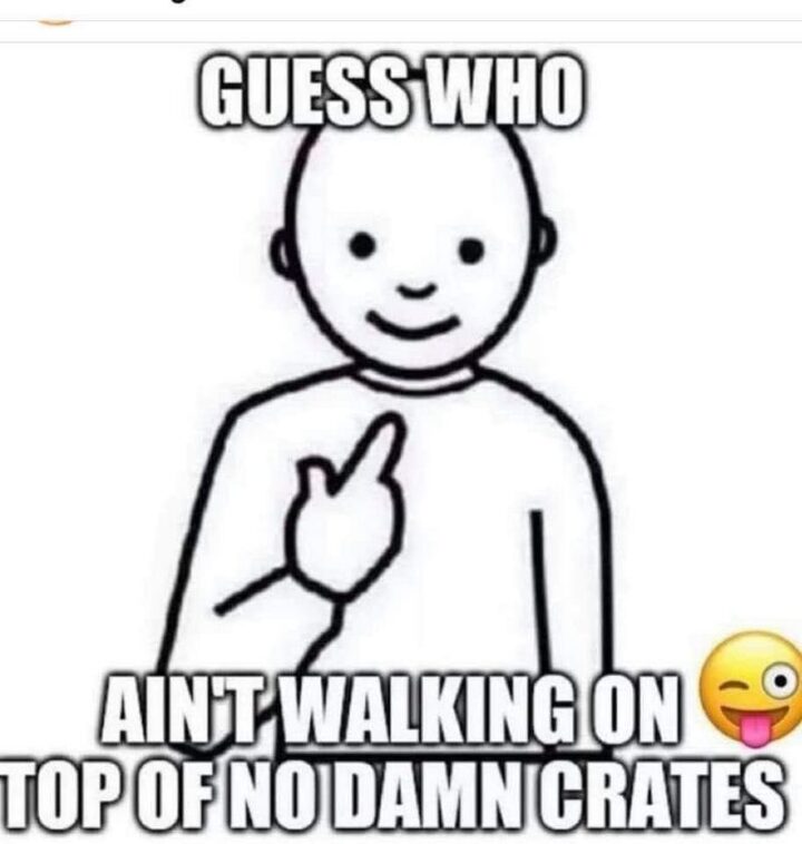 “Guess who ain’t walking on top of no damn crates.”
