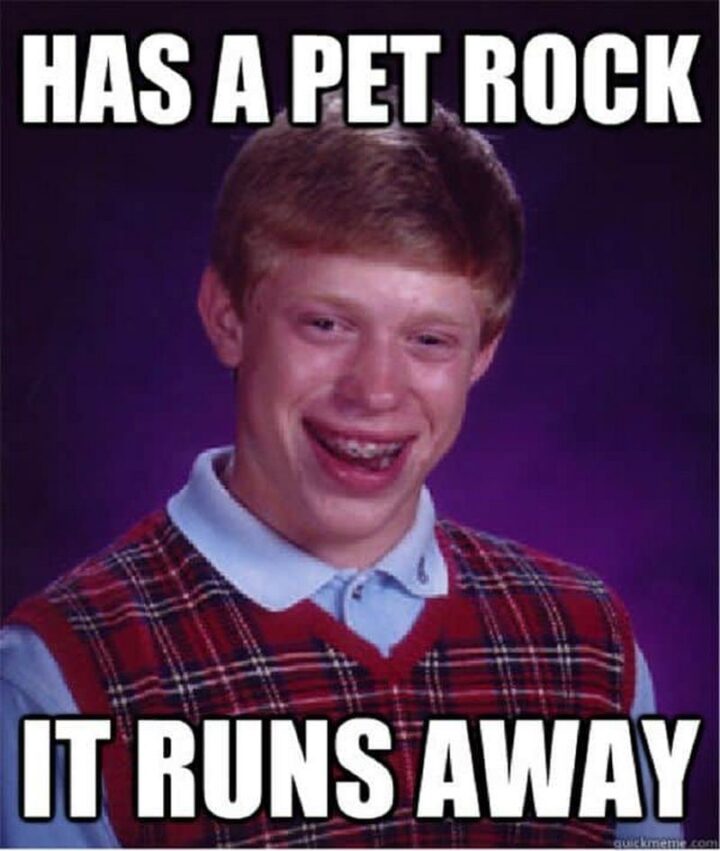 “Has a pet rock. It runs away.”