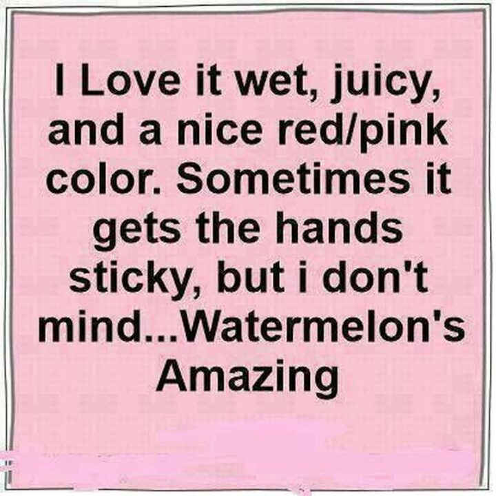 “I love it wet, juicy, and a nice red/pink color. Sometimes it gets the hands sticky but I don’t mind…Watermelon’s amazing.”