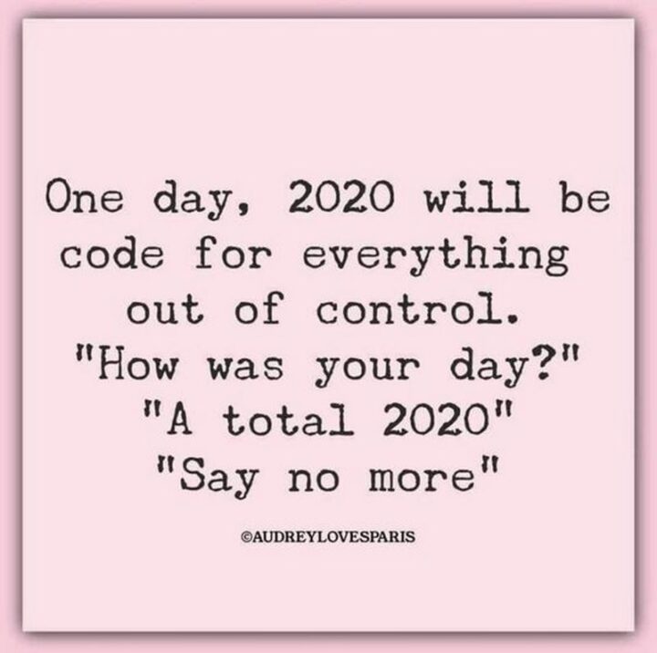 “One day, 2020 will be code for everything out of control. ‘How was your day?’ ‘A total 2020’. ‘Say no more.'”