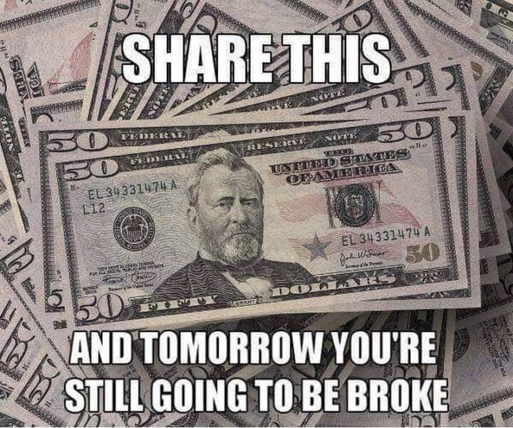 “Share this and tomorrow you’re still going to be broke.”