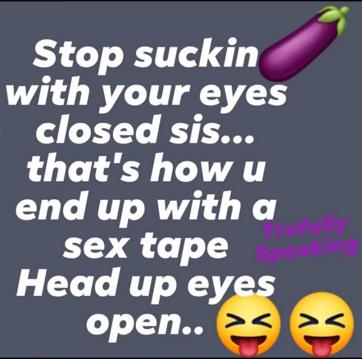 “Stop suckin’ with your eyes closed sis…That’s how u end up with a sex tape. Head up eyes open…”