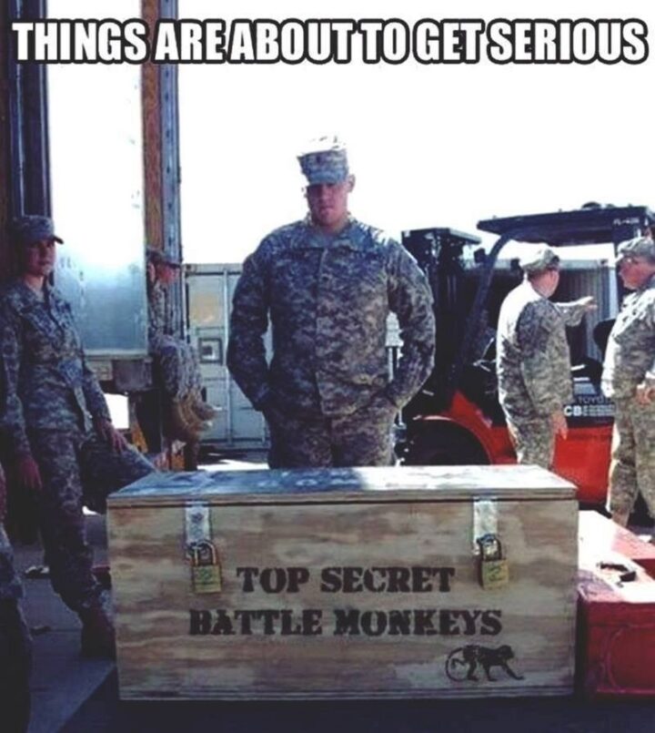 “Top secret battle monkeys. Things are about to get serious.”