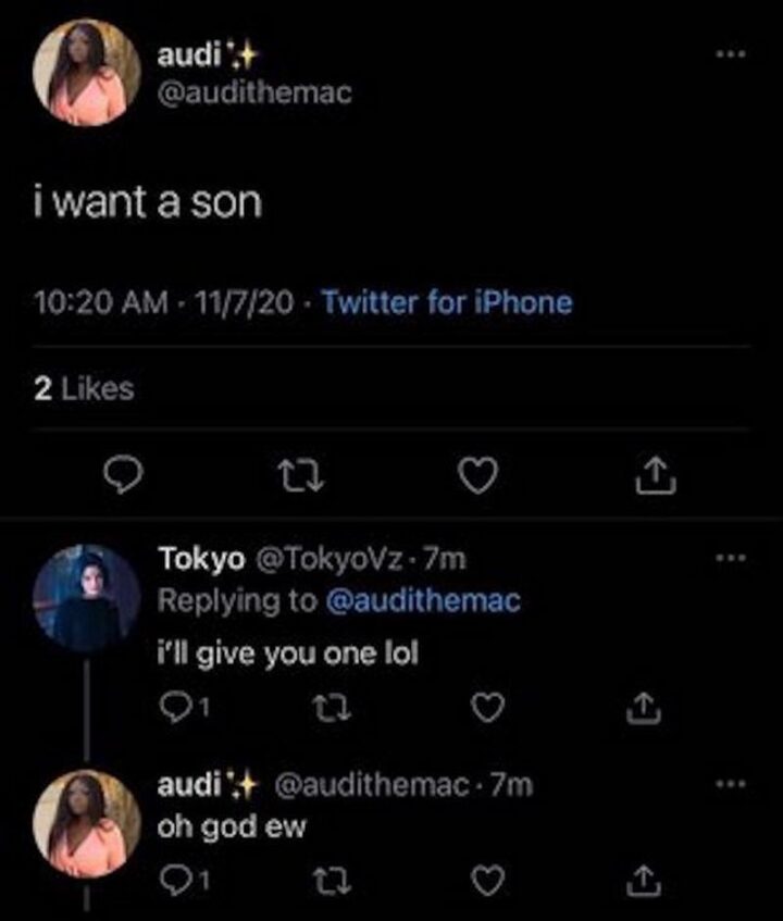“I want a son. I’ll give you one LOL. Oh God ew.”