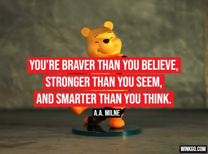 10) “You’re braver than you believe, stronger than you seem, and smarter than you think.” – A.A. Milne
