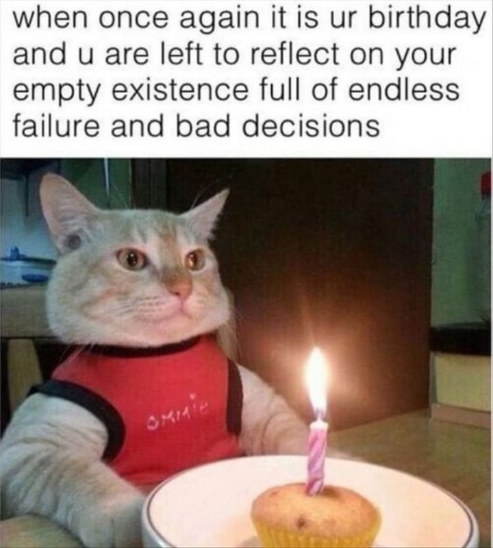 “When once again it is ur birthday and u are left to reflect on your empty existence full of endless failure and bad decisions.”