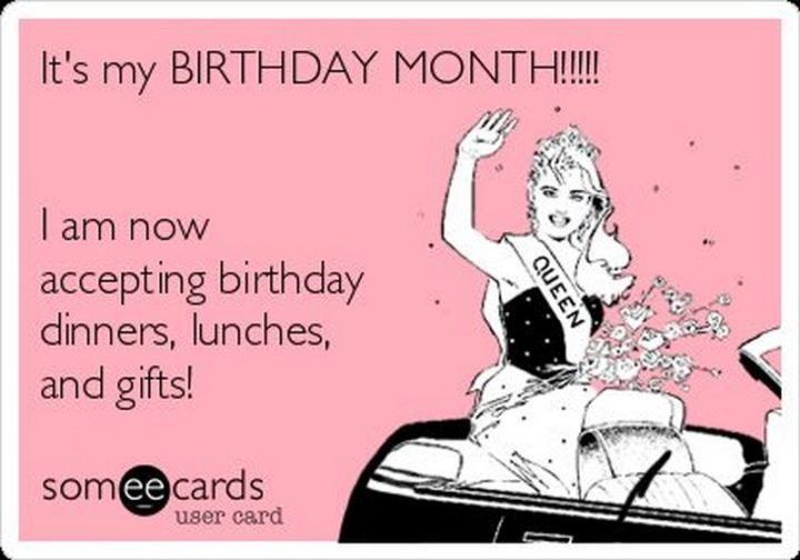 “My friends…It’s my birthday month! I’m now accepting birthday dinners, lunches, and gifts all month long!”