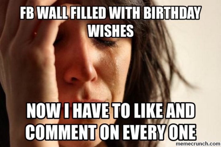 “Facebook wall filled with birthday wishes. Now I have to like and comment on everyone.”