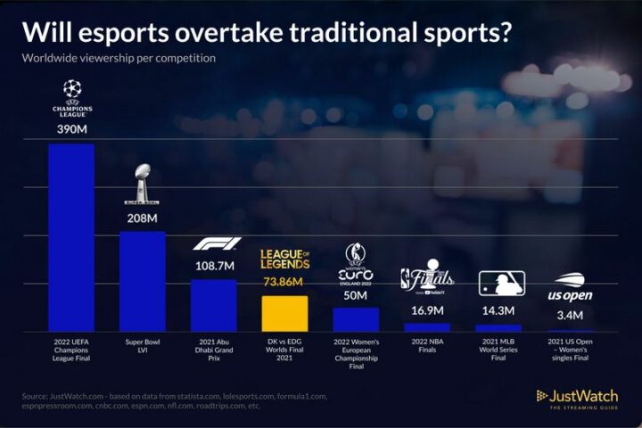 According to stats from JustWatch, the League of Legends World Championship attracted 4x more viewers than the 2022 NBA Finals and the 2021 MLB World Series final! And it is predicted to attract around 118m viewers in 2022 – which would outrank the F1 2021’s deciding race in Abu Dhabi. This is a sport that shouldn’t be overlooked or underestimated.
