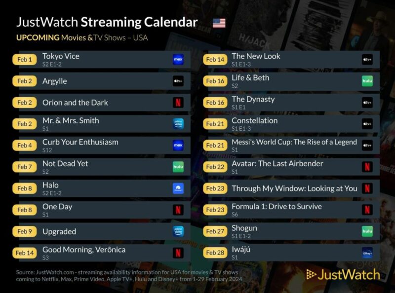 JustWatch Streaming Calendar (February 2024) – Upcoming Movies and TV Shows