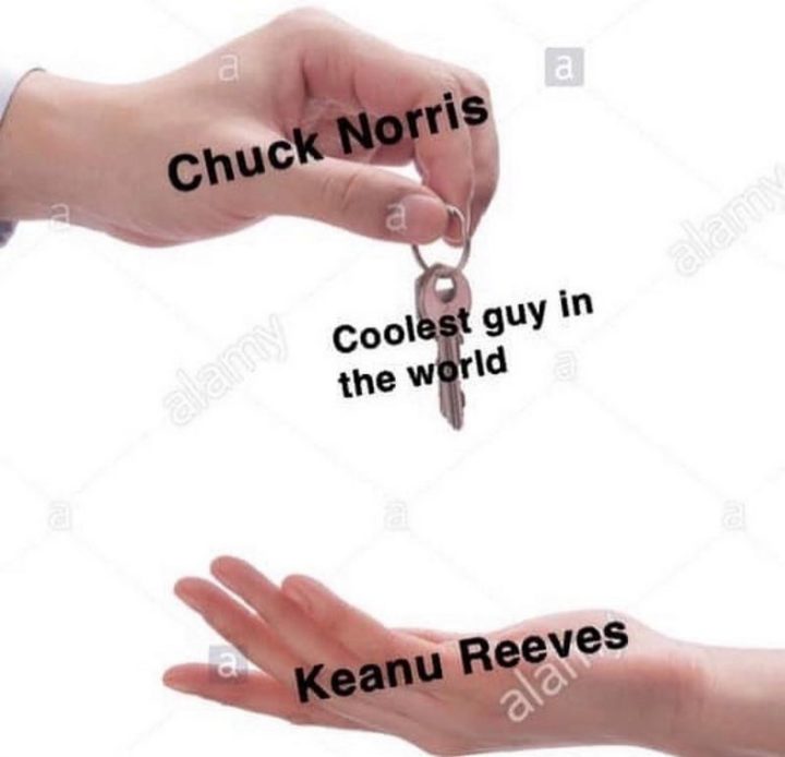 “Chuck Norris handing the keys to the next coolest guy in the world, Keanu Reeves.”