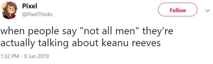 “When people say ‘not all men’ they’re actually talking about Keanu Reeves.”