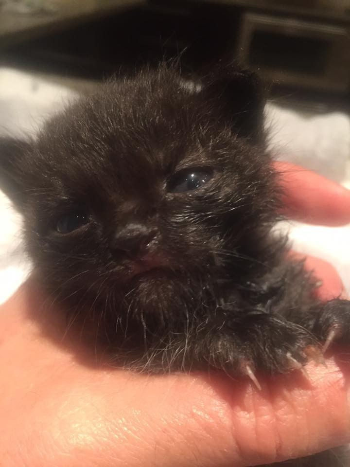 This tiny kitten was rescued after surviving 3 days without food or water.