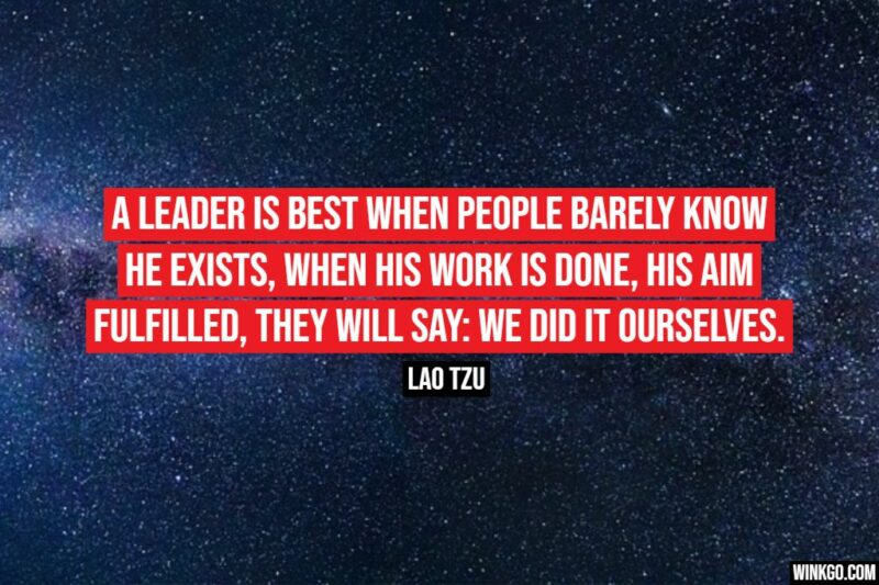1) “A leader is best when people barely know he exists, when his work is done, his aim fulfilled, they will say: we did it ourselves.” – Lao Tzu