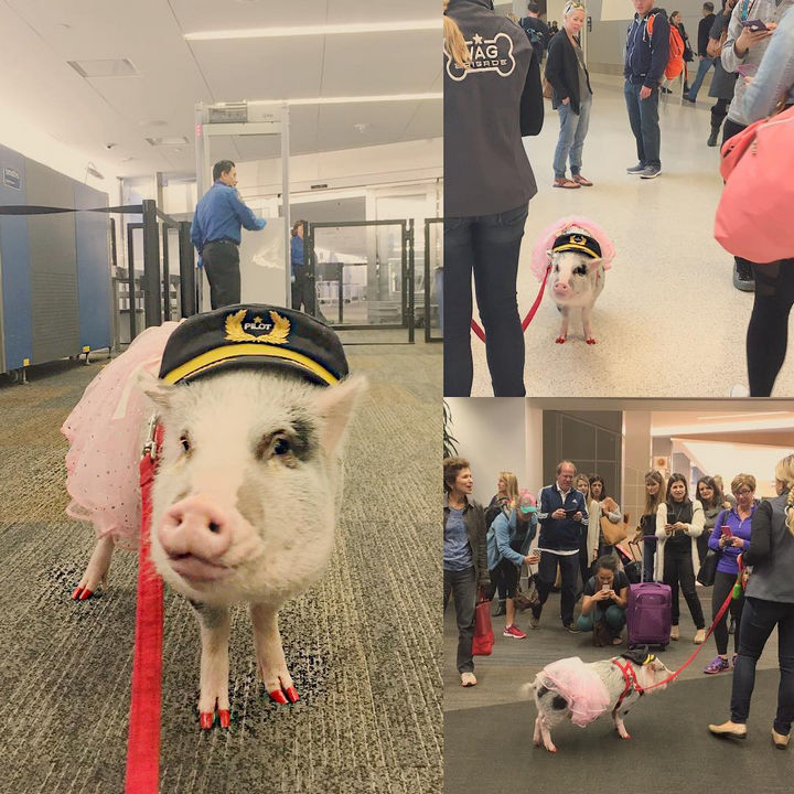 LiLou the therapy pig is super cute and seeing her walking towards you would be enough to make anybody smile. She wears a cute ‘Pet Me!’ dress and passengers just can’t resist playing with her at the San Francisco International Airport.