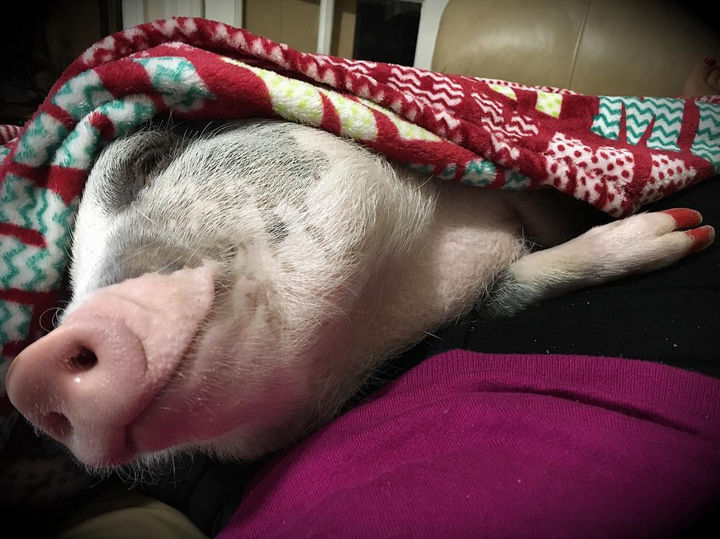 2) LiLou the therapy pig loves to visit seniors at hospitals and nursing homes.
